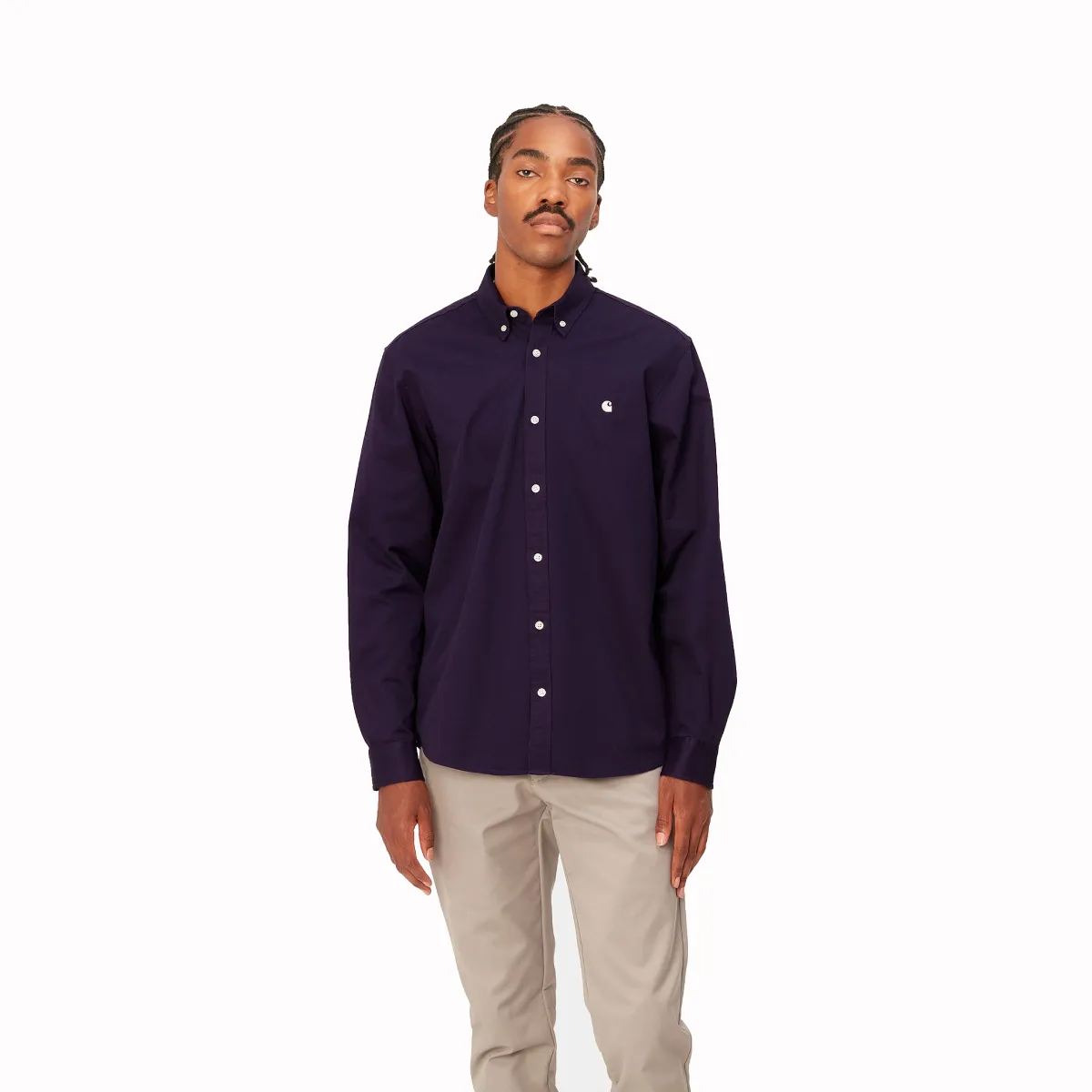 Klasszikus Carhartt-Wip hosszú újjú ing a bal mellkasán hímzett C logóval