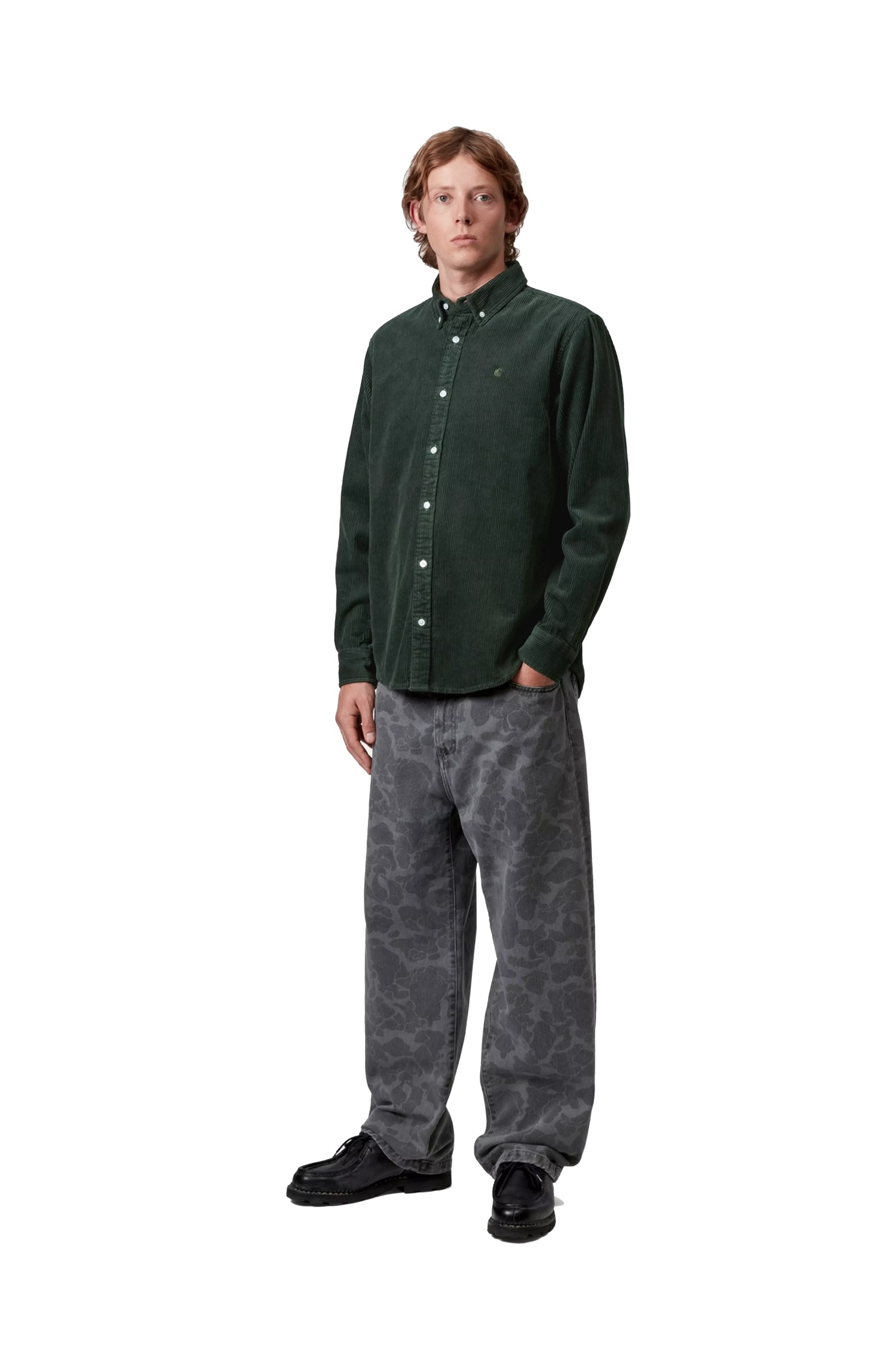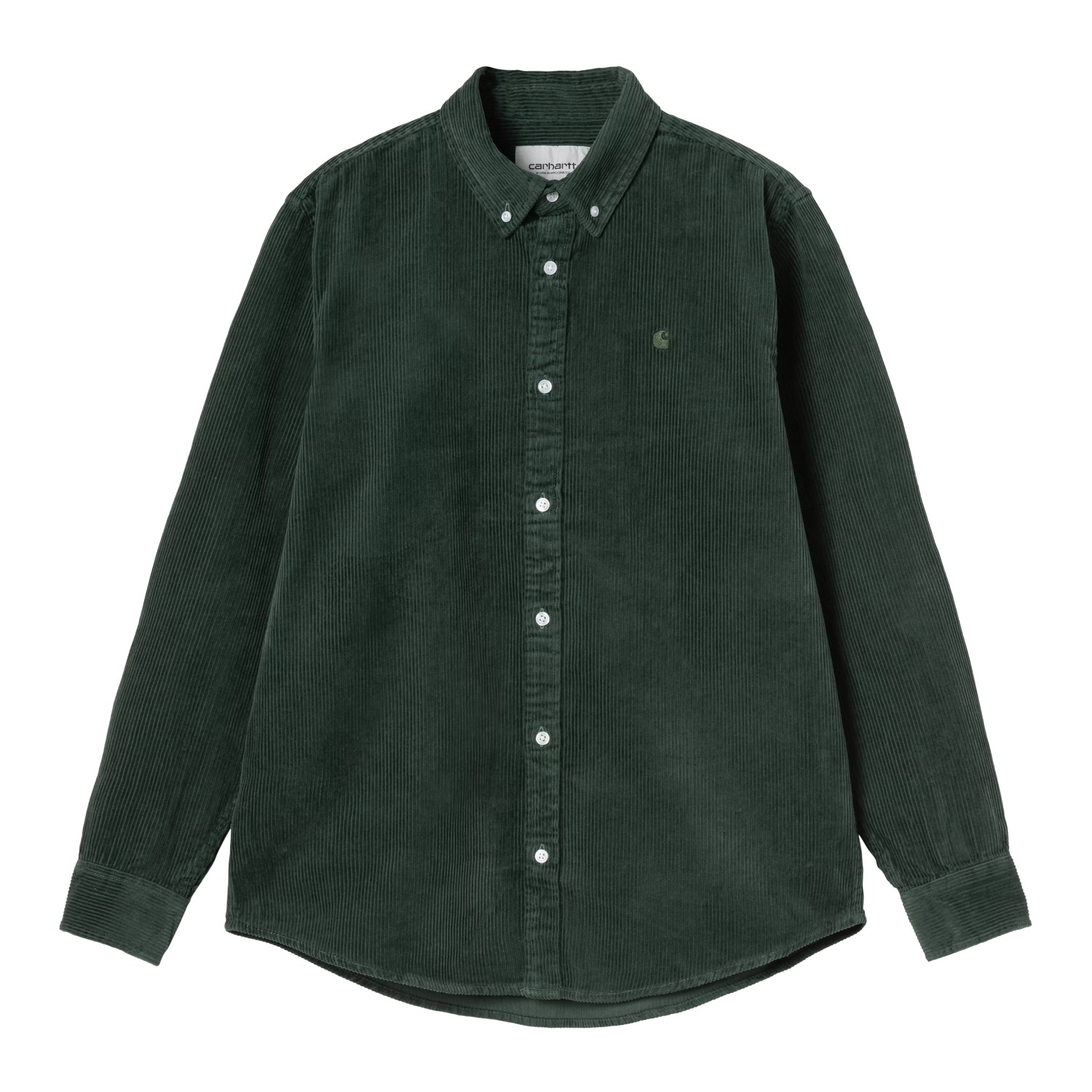 Klasszikus szabású Carhartt-Wip hosszú ujjú ing a bal mellkasán hímzett C logóval.