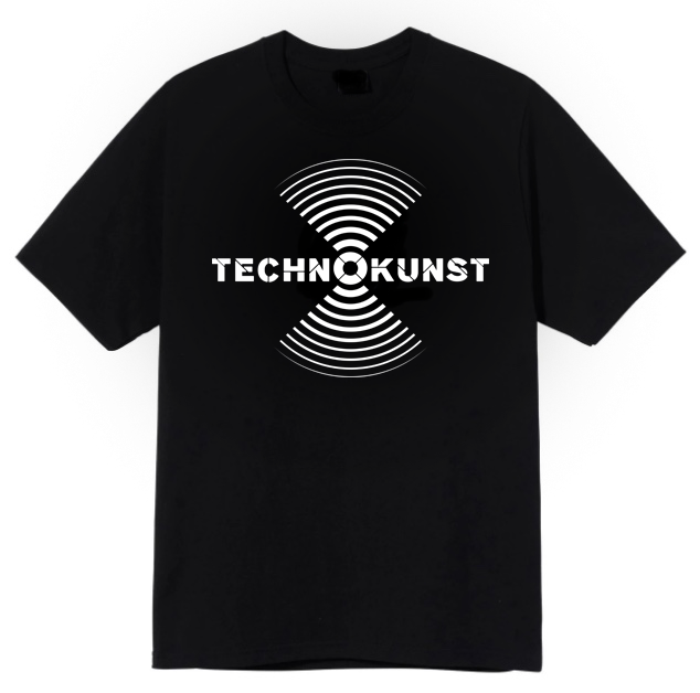 Technokunst hivatalos póló, mely elől a nagy logó, hátul a nyakán a felirat egy színnel szitanyomott motívummal rendelkezik.